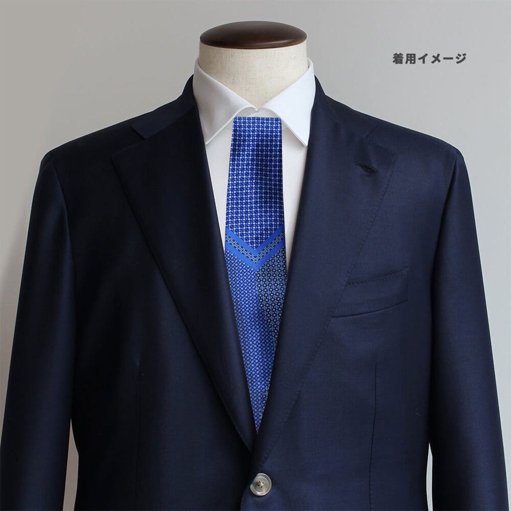 ネクタイの顔とも言える剣先部分はシルク生地のデザインが剣先にあたる45度の角度に美しく配置されるように正確にカットされています。