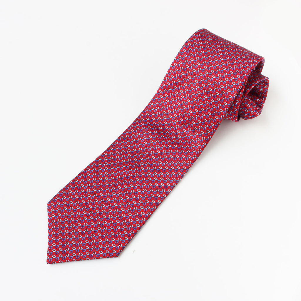 【Silvio Fiorello/シルヴィオ・フィオレッロ】シルクネクタイ プリント レッド 小紋 (sil00078)
