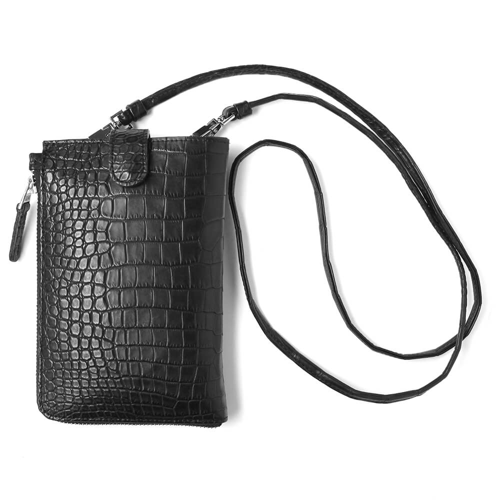 美しい鱗模様と圧倒的な存在感に加え、優れた耐久性を守っています。スマートフォンやミニウォレットなどすっきり収まるサイズ感で、一見使えるシンプルなデザインが魅力です。ショルダーストラップも同素材のクロコダイルレザーを使用することでさらに高級な雰囲気に。外にもポーチとしてもお使いいただけます。