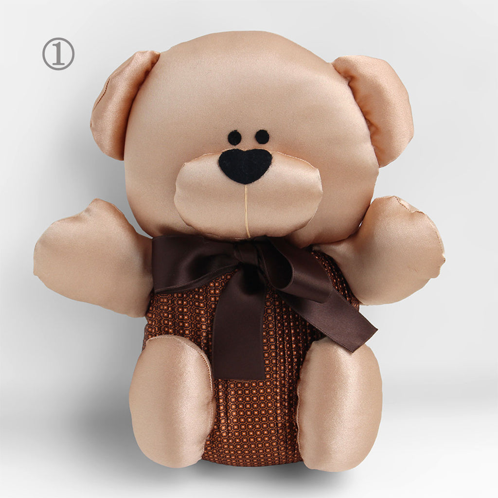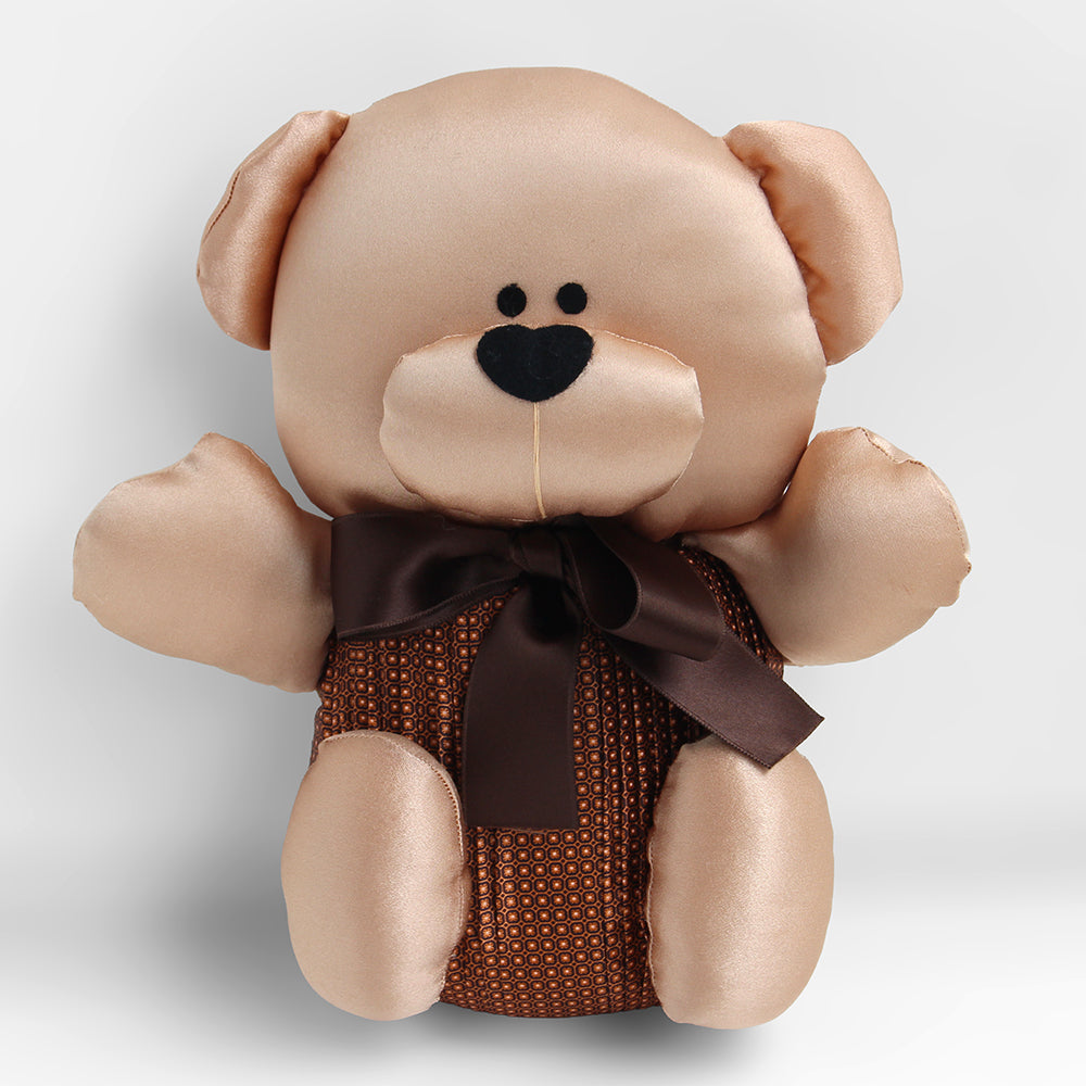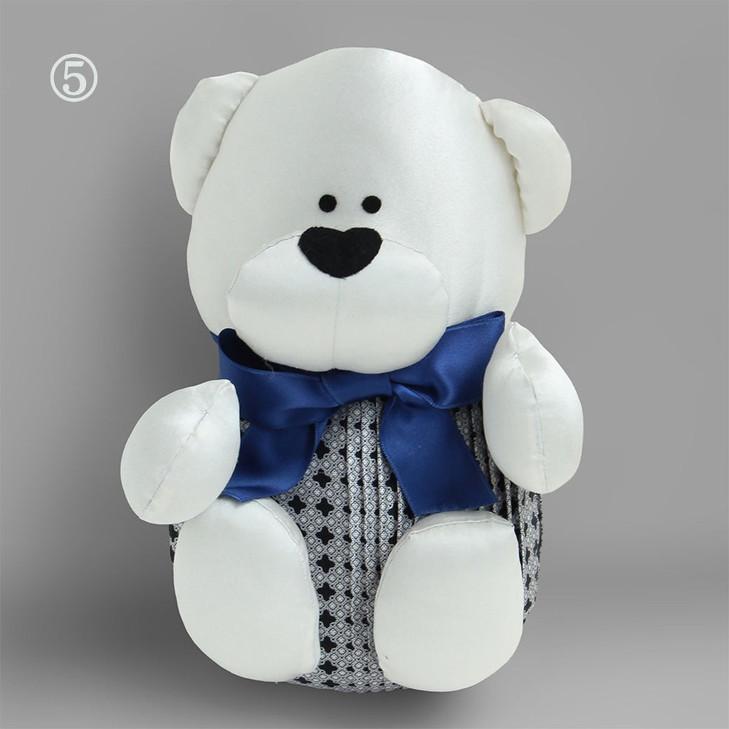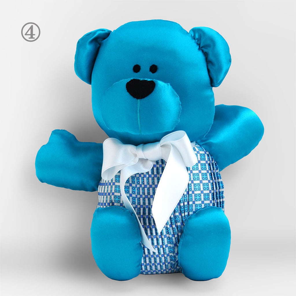 上質なシルクで仕立てられた、特別なクマのぬいぐるみ。 ボディ部分にはネクタイと同じ生地を使用しております。