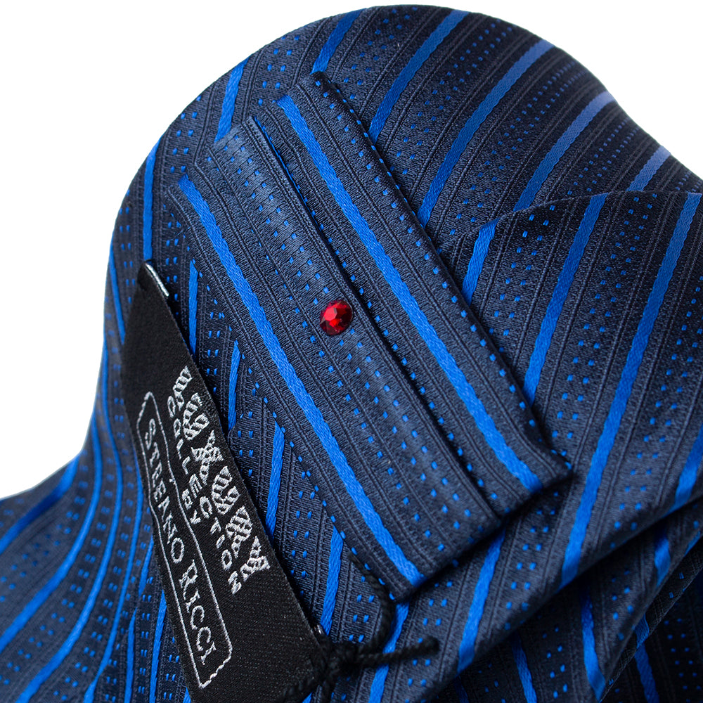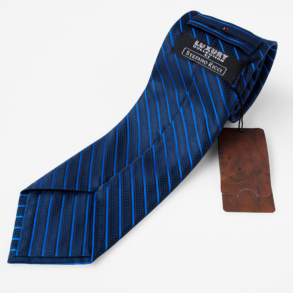 【ステファノリッチ】ネクタイ |シルク ジャカード ネイビー ブルー レジメンタルストライプ (ste01053)