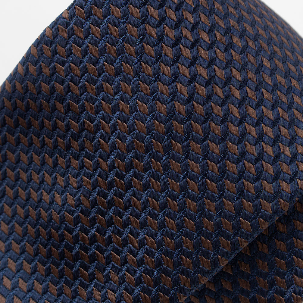 ネイビーとブラウンの色使いが奥行きを生む、温かみのある織り柄。