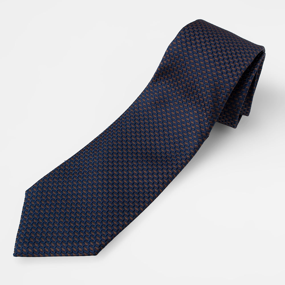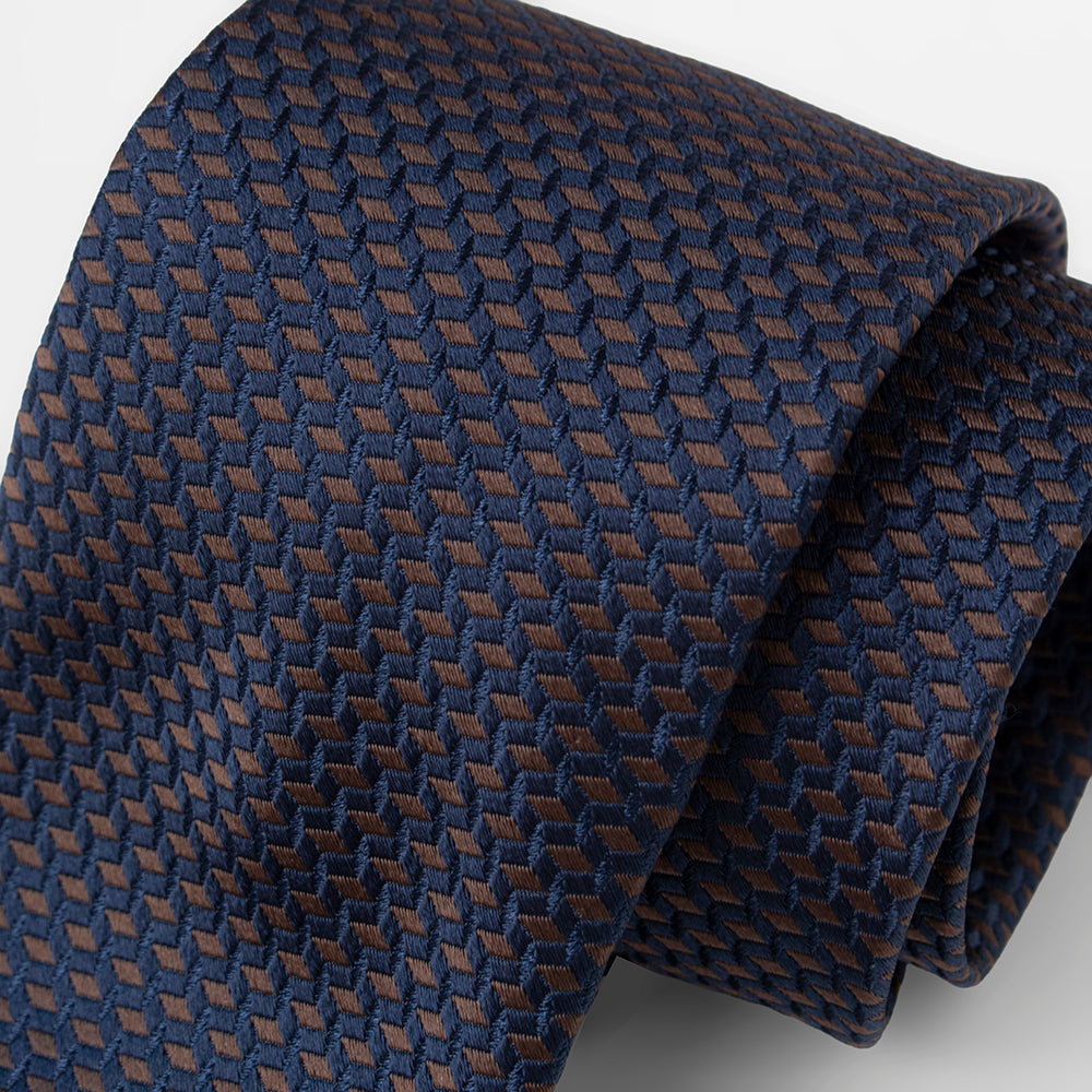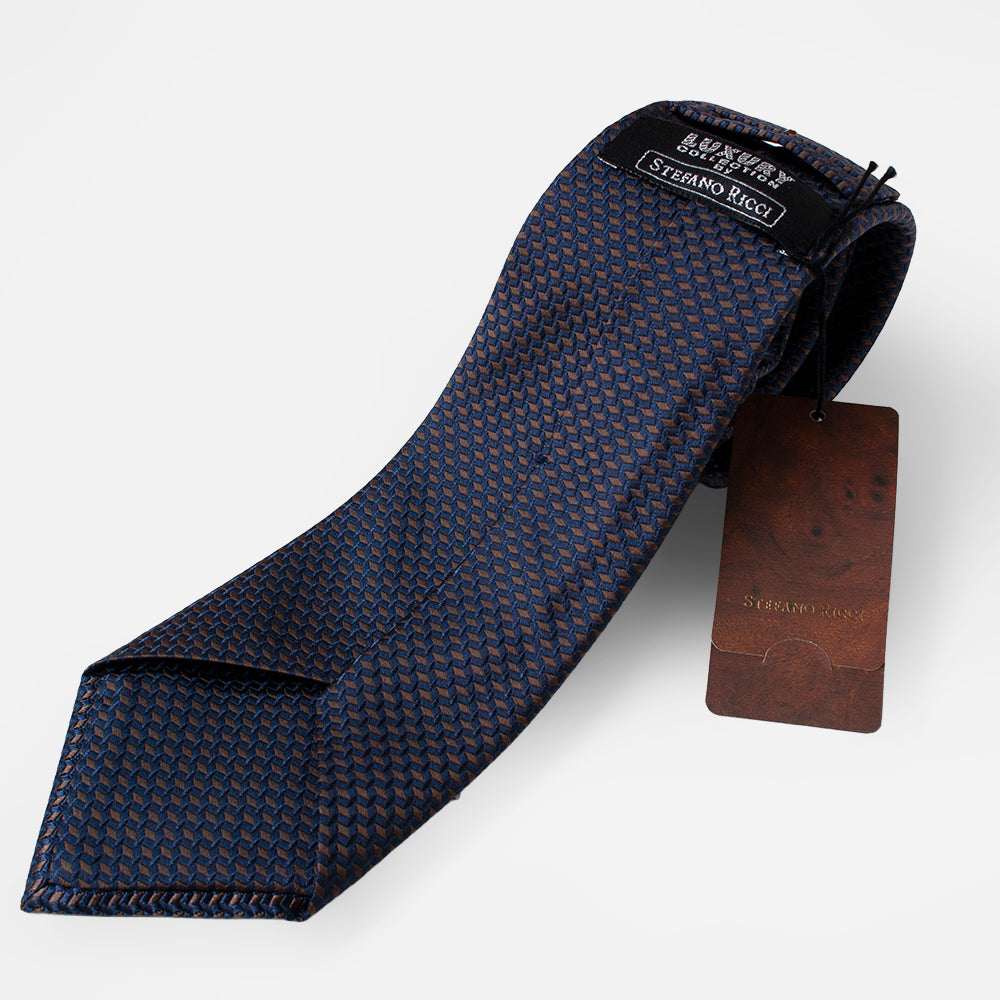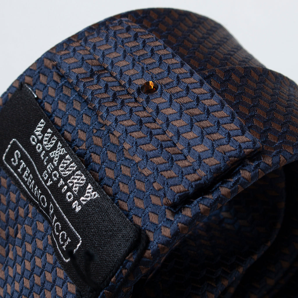 【ステファノリッチ】ネクタイ |シルク ジャカード ネイビー ブラウン (ste01056)