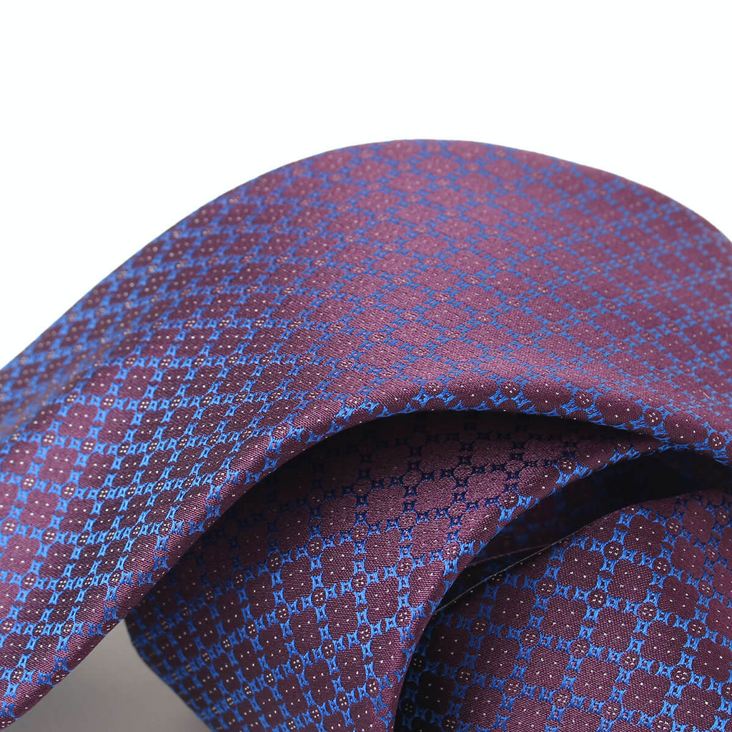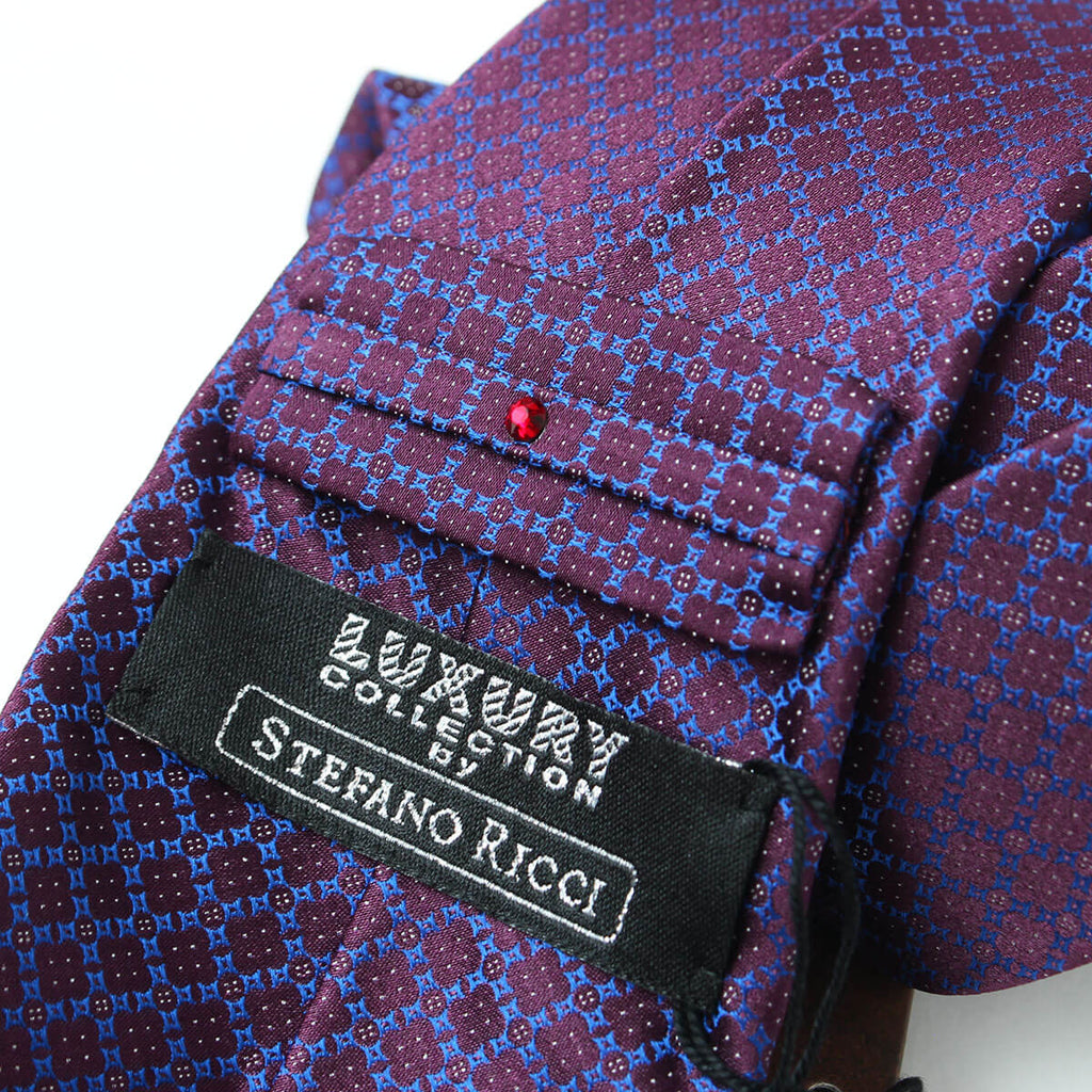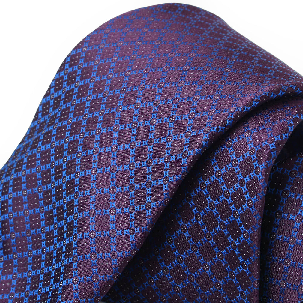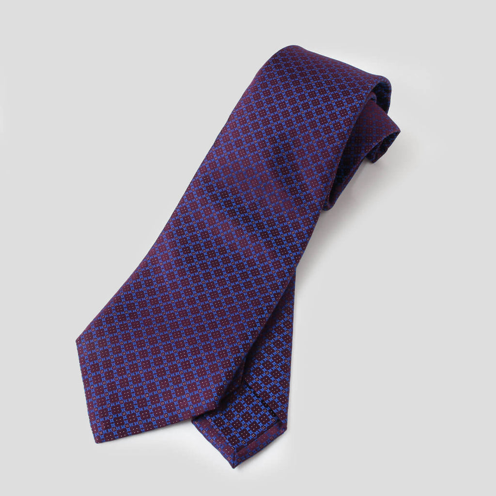 【ステファノリッチ】ネクタイ|シルク ジャカード アーカイブ生地 ボルドー×ブルー ジオメトリック (ste01077)