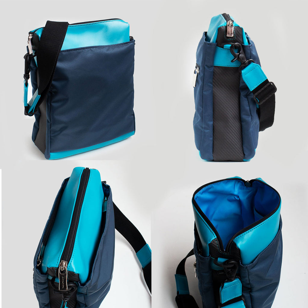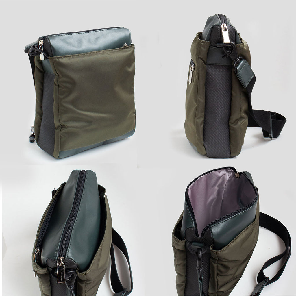 イタリアの高級ナイロンメーカー「リモンタ社」の上質ナイロンをメインに、カーボンファイバーとレザーを組み合わせ、機能美と耐久性を守ったショルダーバッグ。軽量でありながらタフな素材を使用しているので、日常使いから週末のアクティブなシーンまで大いに活躍します。複数のポケットと仕切りを備え、コンパクトなサイズ感ながら収納力は抜群です。スマートフォンや財布、鍵などの小物類が整理しやすく、デイリーユースに最適です。内装には明るい色のナイロンを採用しており、荷物の視認性も良好です。この裏地にもリモンタナイロンを贅沢に使用し、細部までこだわった仕上がりです。