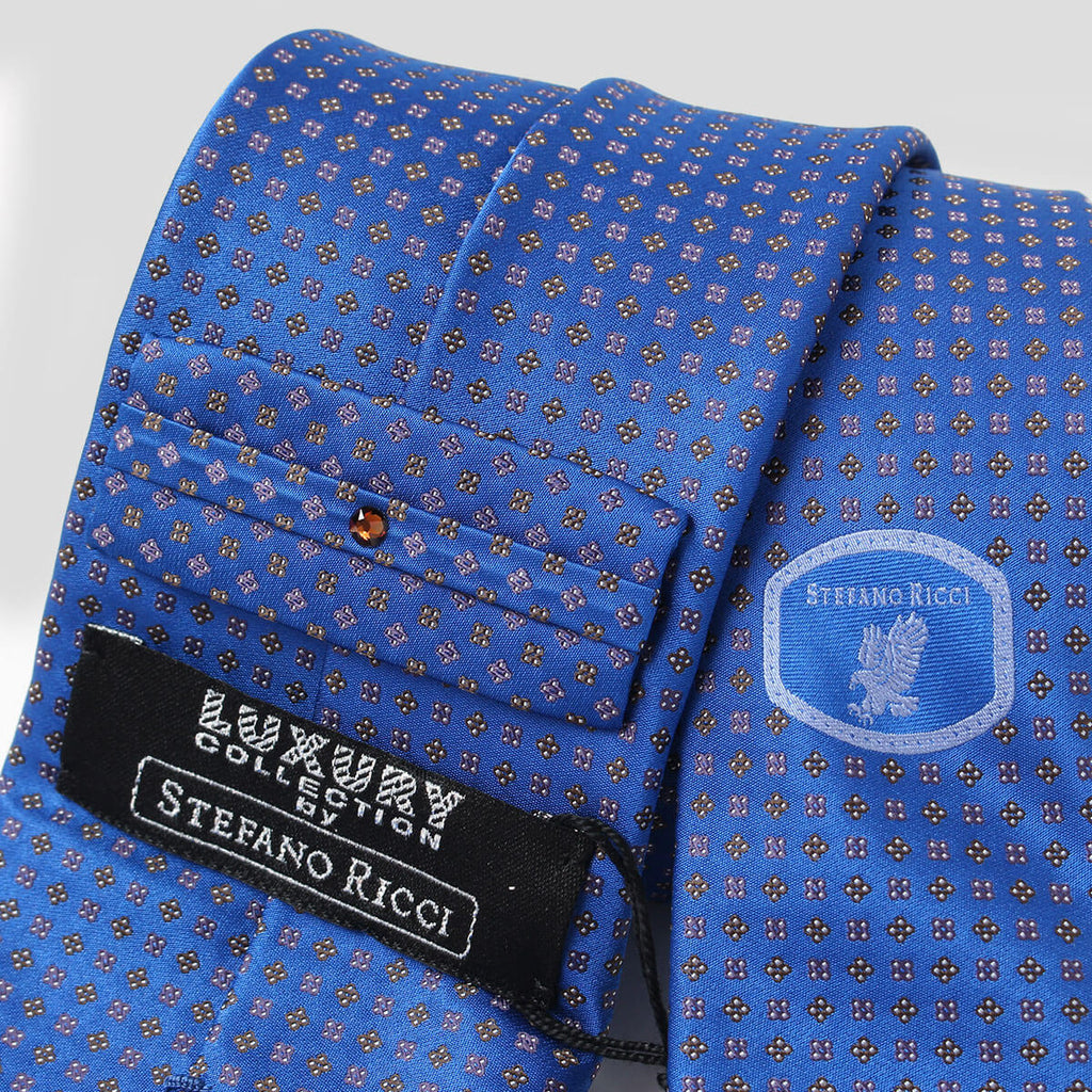 【ステファノリッチ】ネクタイ|シルク ジャカード アーカイブ生地 ブルー 小紋 (ste01075)
