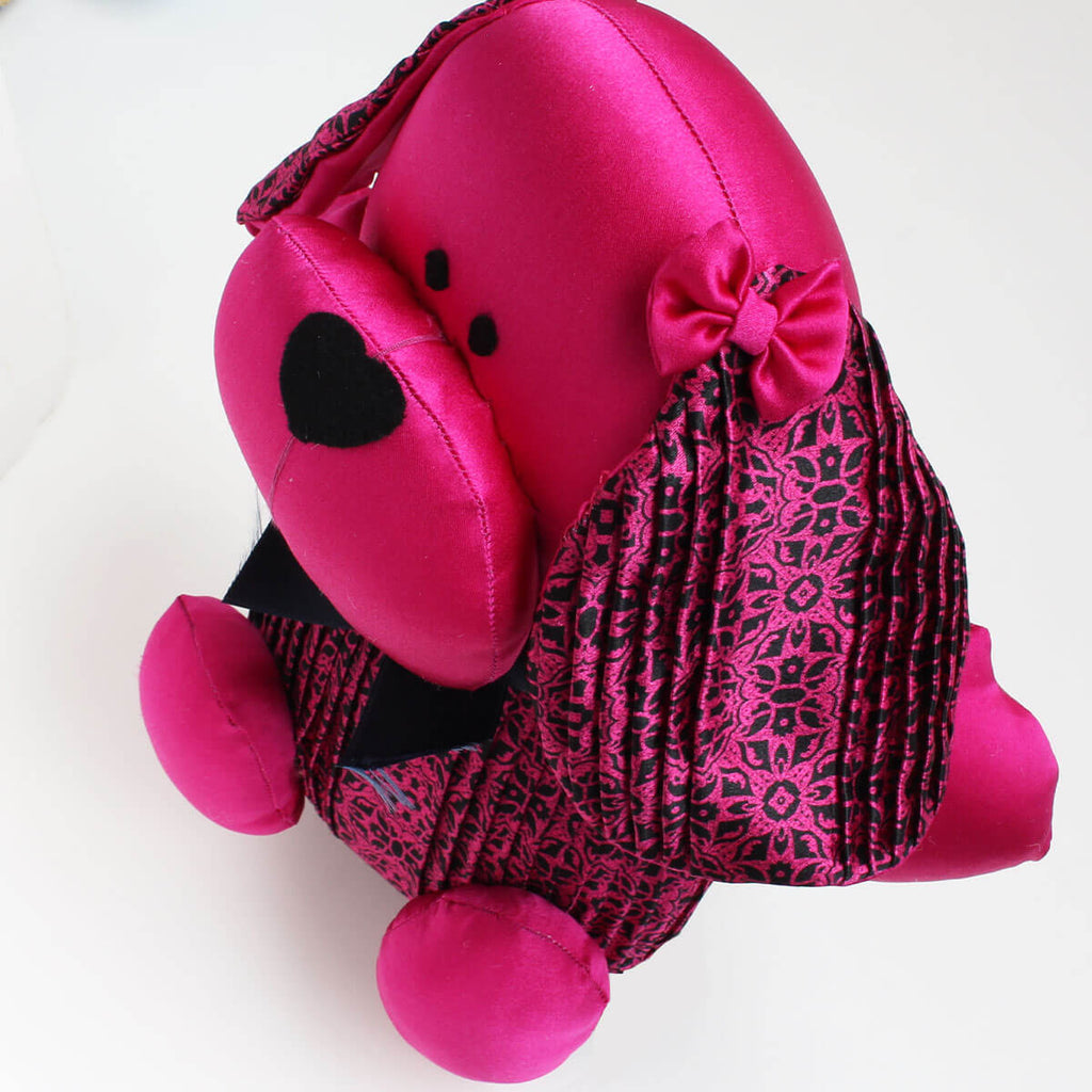 可愛らしい耳と胴体部分にはネクタイと同じプリーツ生地を使用しております。