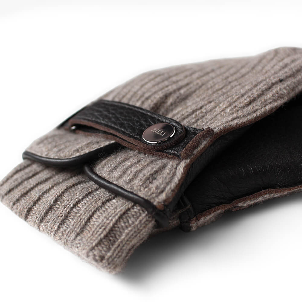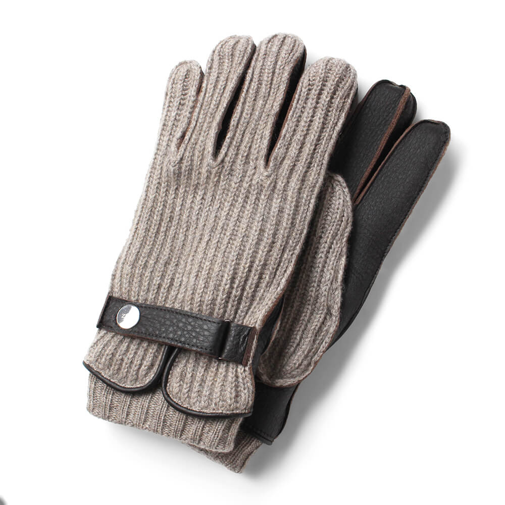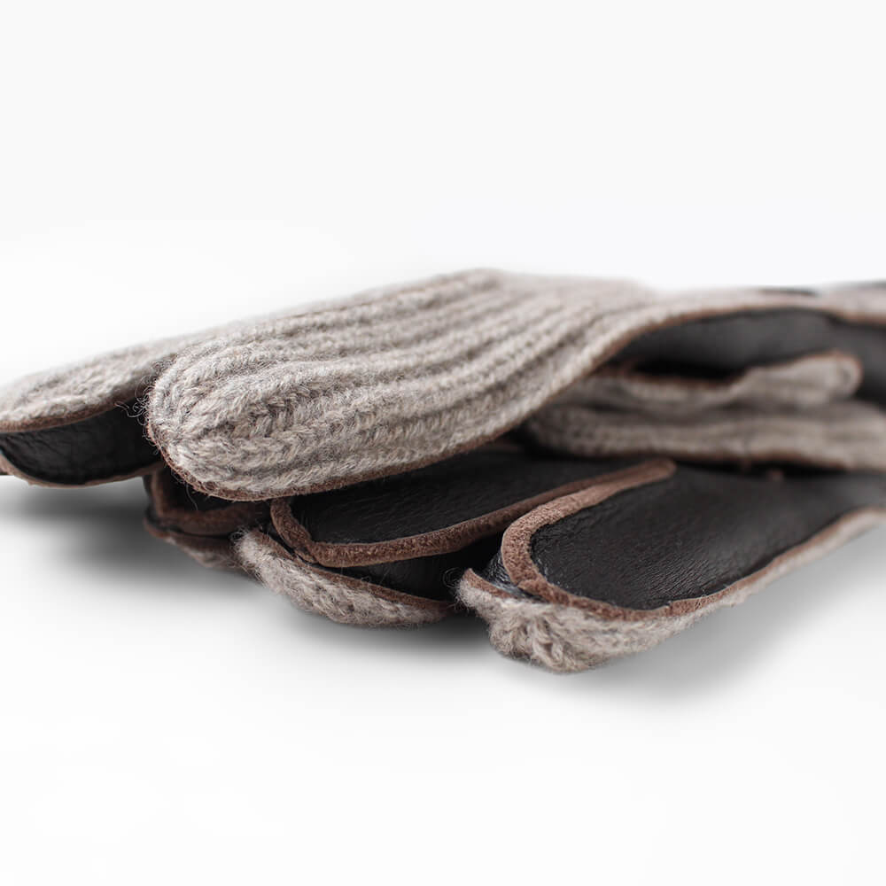 手の甲には上質なモカブラウンのカシミヤニットを使用し、柔らかく上品な印象に。