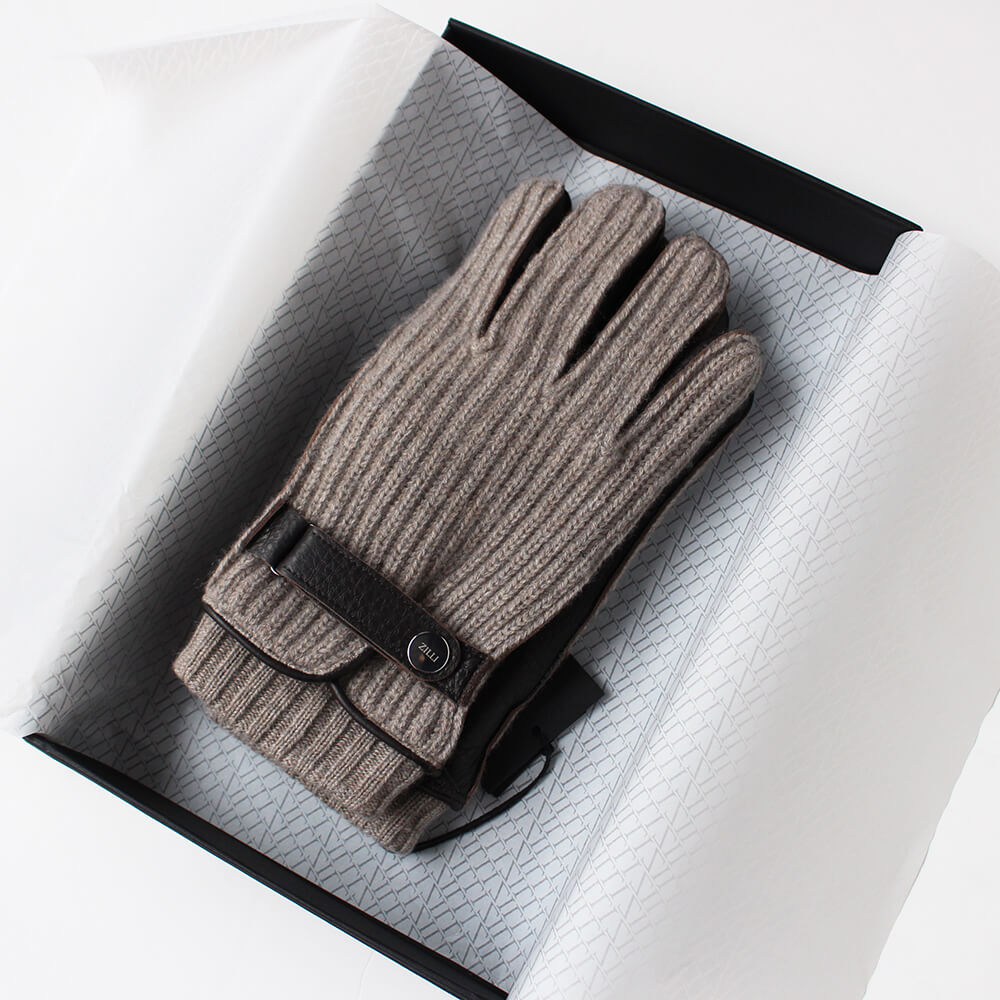 【ZILLI/ジリー】ニットディアスキングローブ モカブラウン (zil02463)